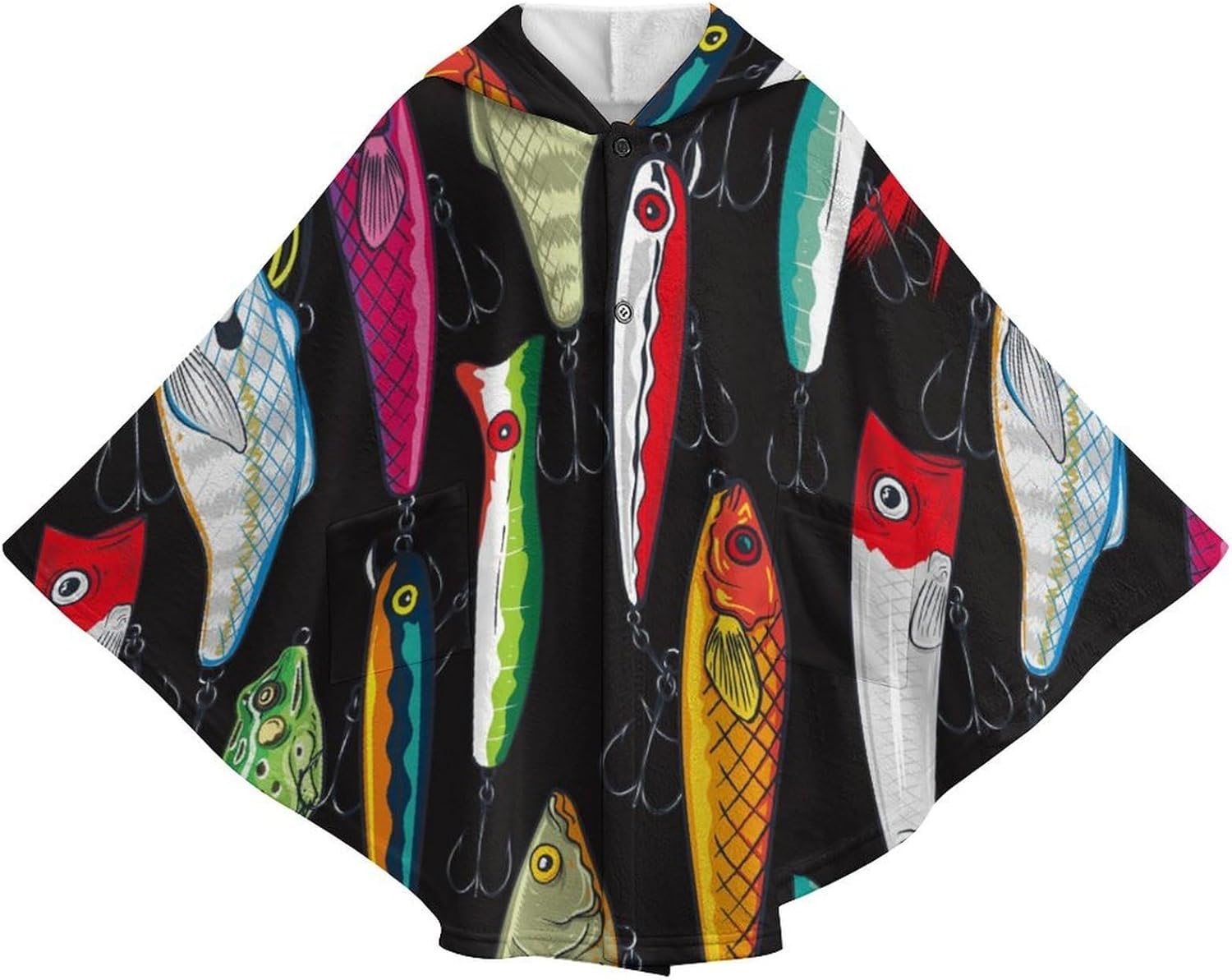 The wearable blanket is made of soft and comfortable flannel fabric, which makes you feel warm in spring, autumn and winter. It has a cape-like shape, a button closure for easy wearing and taking off, and two pockets.