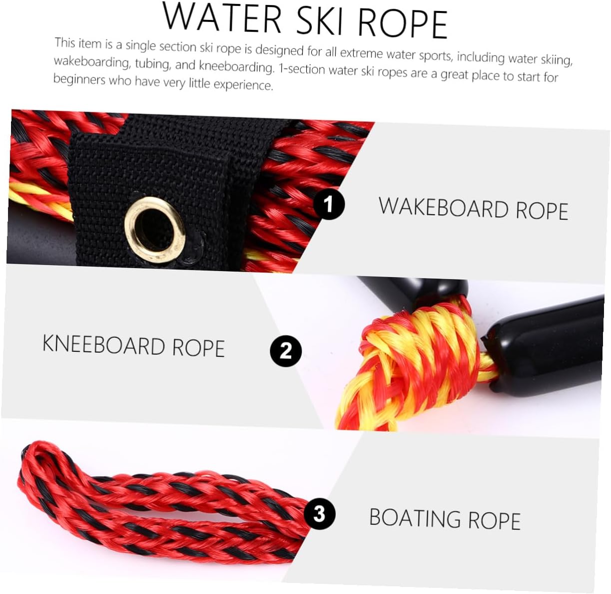 Package Include 1 ski rope Features - Size: About 2300.00X0.80X0.80cm/903.90X0.31X0.31inch. - Material: Nylon. -Product Info:Water skiing rope - It provides a durable handle for a comfortable grip ski rope boat. - It is also resistant to and , so it retains its strength longer than other materials. - Comfortable and handle for less wear and tear on the hands water ski rope with handle. - ColorBlack - The rope features excellent strength-to-weight ratio and resilience tubing rope. - Ski longer, harder and stronger with less muscle fatigue water ski towing rope.Goods Descriptionwake ski rope and handle Are you looking for practical, yet boating accessories? Are you in search of a sturdy, trustworthy tool that can do multiple jobs at once? , ! The water ski rope for men and women must meet you needs.water ski rope and handle It is one of the for you